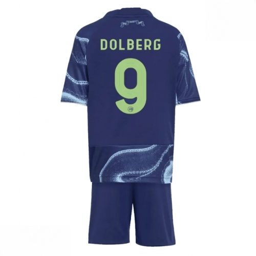 Echipament fotbal Ajax Kasper Dolberg #9 Tricou Deplasare 2025-26 pentru copii tricou și pantaloni