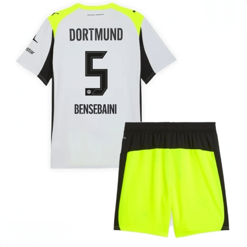 Echipament fotbal Borussia Dortmund Ramy Bensebaini #5 Tricou Deplasare 2025-26 pentru copii set fotbal