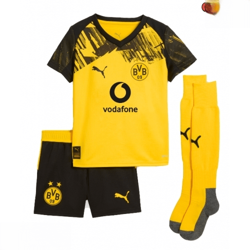Echipamentul de fotbal Borussia Dortmund 2025-26 pentru copii, versiunea acasă, este creat pentru tinerii suporteri care doresc să poarte culorile unuia dintre cele mai populare cluburi din Germania. Setul include tricou și șort, oferind o ținută sportivă completă inspirată de echipamentul purtat de jucătorii echipei Borussia Dortmund pe terenul propriu.