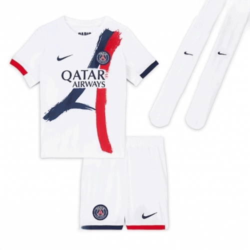 Versiunea Deplasare 2025-26 reflectă estetica unică a PSG, având un design inovator care se diferențiază de celelalte echipamente ale clubului. Culorile și detaliile grafice sunt concepute pentru a adăuga un plus de energie și stil pe teren.